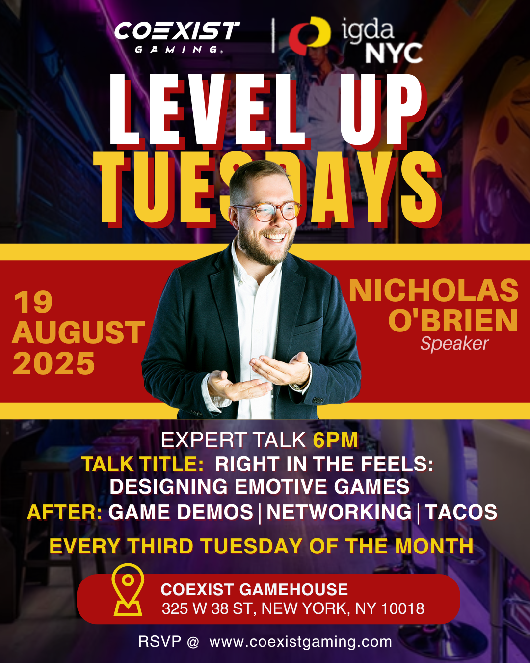 Level Up Tuesdays is your new go-to space to connect, learn, and grow with fellow game developers in NYC. Every month, we will feature a talk from an industry professional, after which, there will be spotlights/demos of local games, alongside a cool place to network with other game devs. RSVP for FREE by CLICKING HERE […]